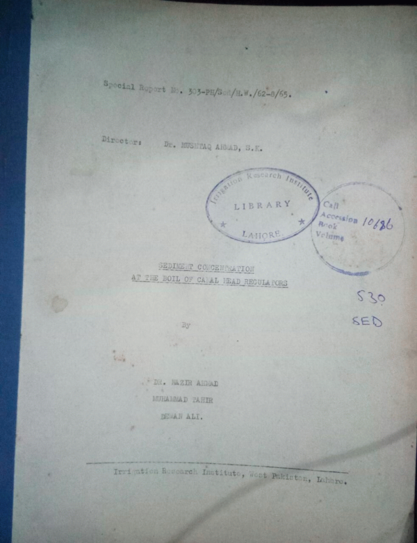 Publication details: Lahore: Irrigation Research Institute; 1962