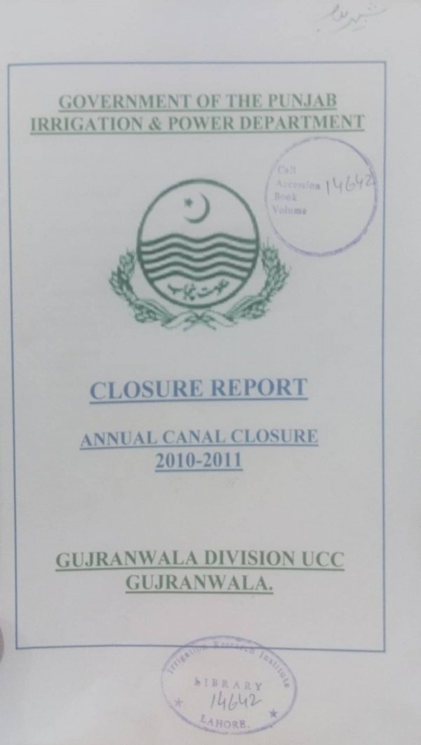 Clousre report: annal canal closure 2010-2011 / Government of The Punjab Irrigation & Power Department by
