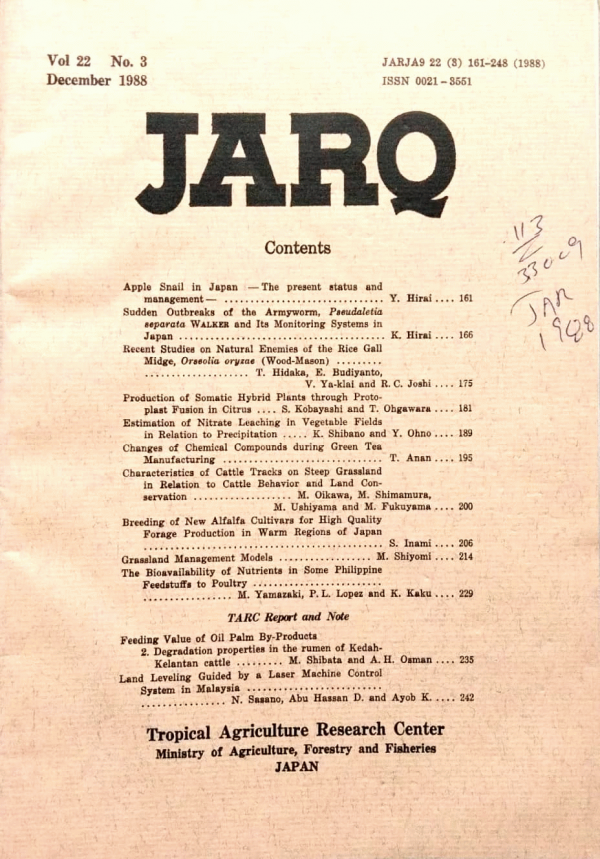 Jarq / Tropical Agriculture Research Center Ministry of Agriculture Forestry and Fisheries Japan by Series: No.2 ; Vol.22