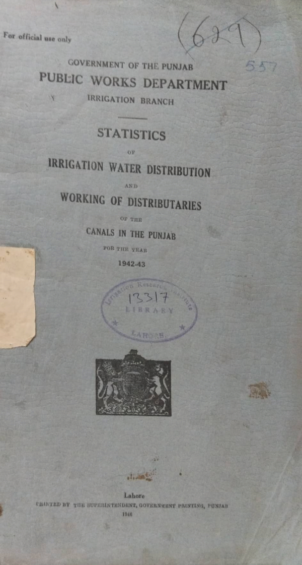 tatistics of irrigation, water distribution and working of distributaries of canals in the Punjab for the year 1942-43./