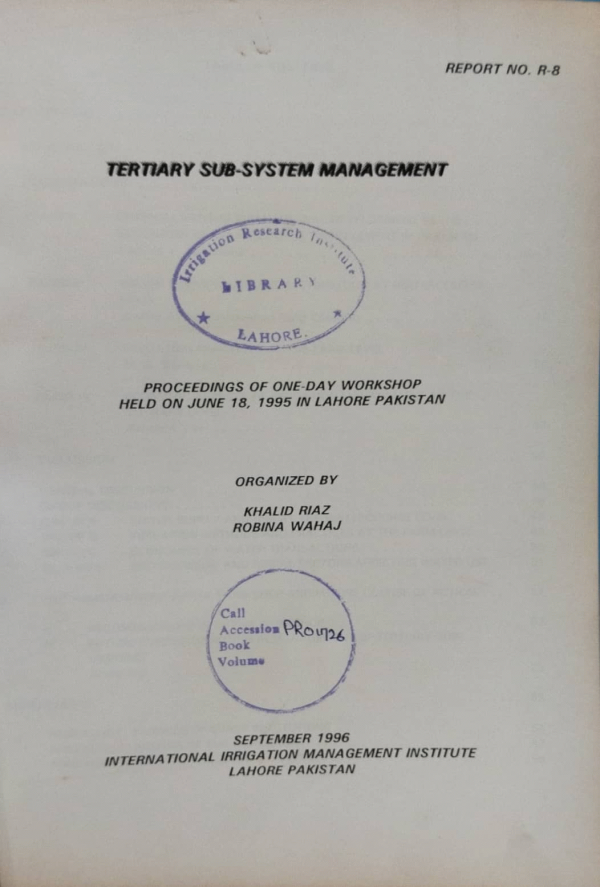 Publication details: Lahore: International Irrigation Management Institute; 1996