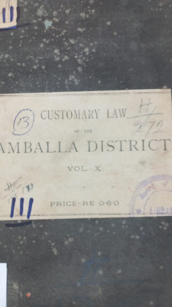Customary law of the Amballa district / Kensington,A. by Series: ; V-X