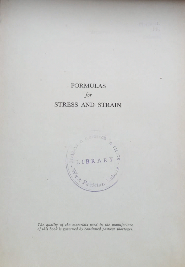 Formulas for stress and strain / Raymond J. roark by