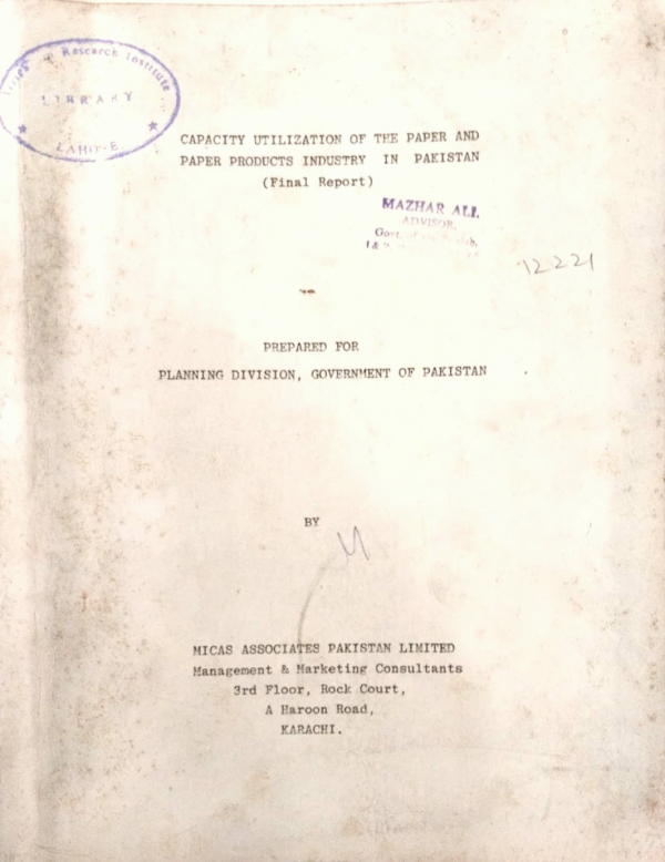Capacity utilization of the paper and paper products industry in Pakistan : Planning division,government of pakistan by