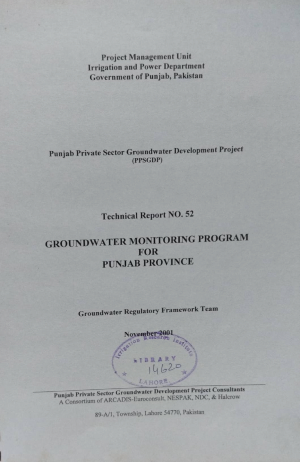 Publication details: Lahore: Punjab Private Sector Groundwater Development Project Consultants; 2001