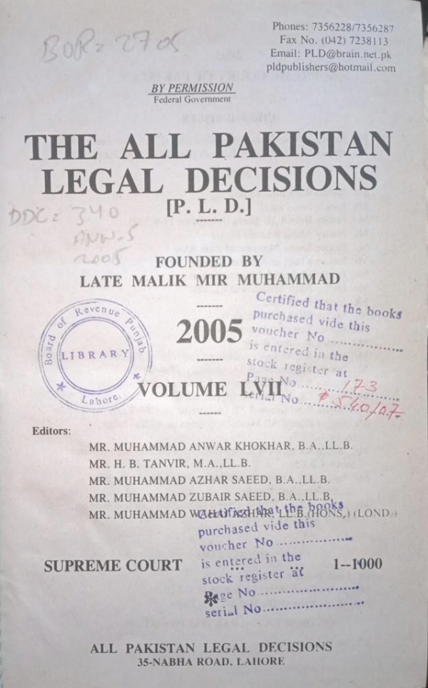 The all pakistan legal decisions (PLD) 3 : 2005 / Malik Meer Muhammad and edited by Muhammad Anwar Khokhar, Muhamad Azhar Saeed & Muhammad Zubair Saeed by Series: ; Vol. LVII
