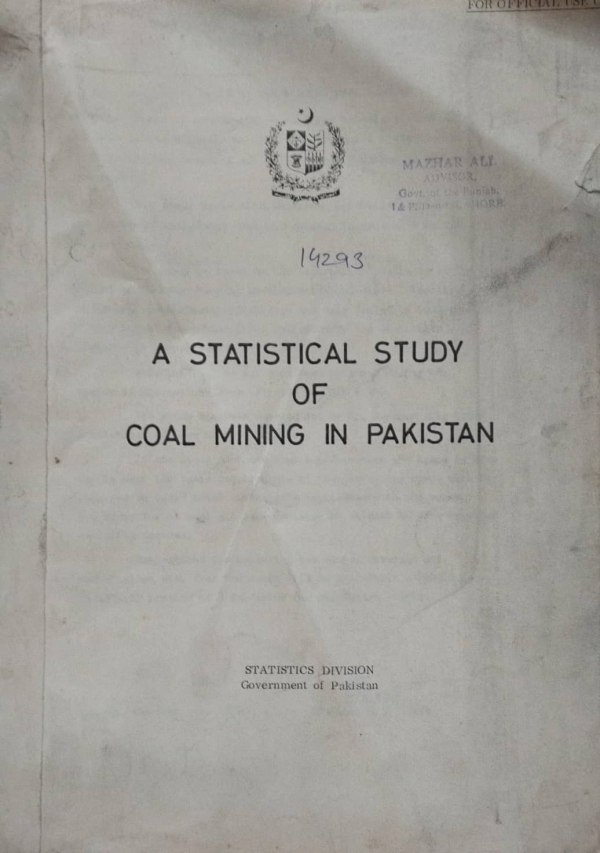 A statistical study of coal mining in Pakistan / Statistics Division Government of Pakistan by