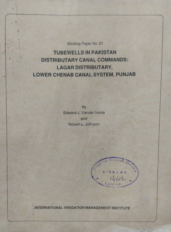 Tubewells in Pakistan distributary canal commands lagar distributary lower chenab canal system punjab / Edward J.Vander Velde by Series: Working Paper No.21