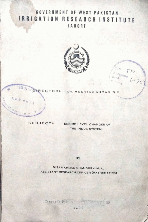 Regime Level Changes of the Indus System/ Nisar, Ahmad Ch by