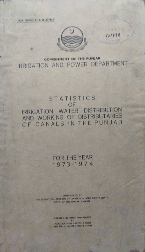 Publication details: Lahore: The Statistical Section of Irrigation and Power Deptt; 1975