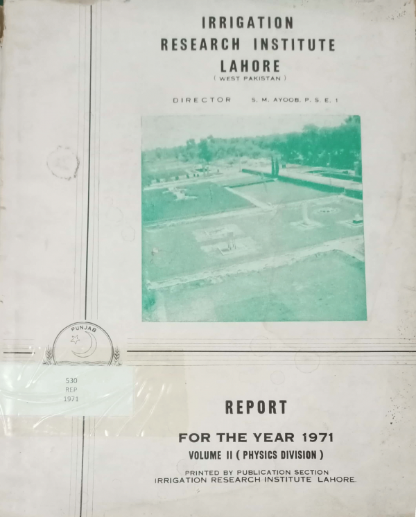 Publication details: Lahore: Irrigation research institute, 1968