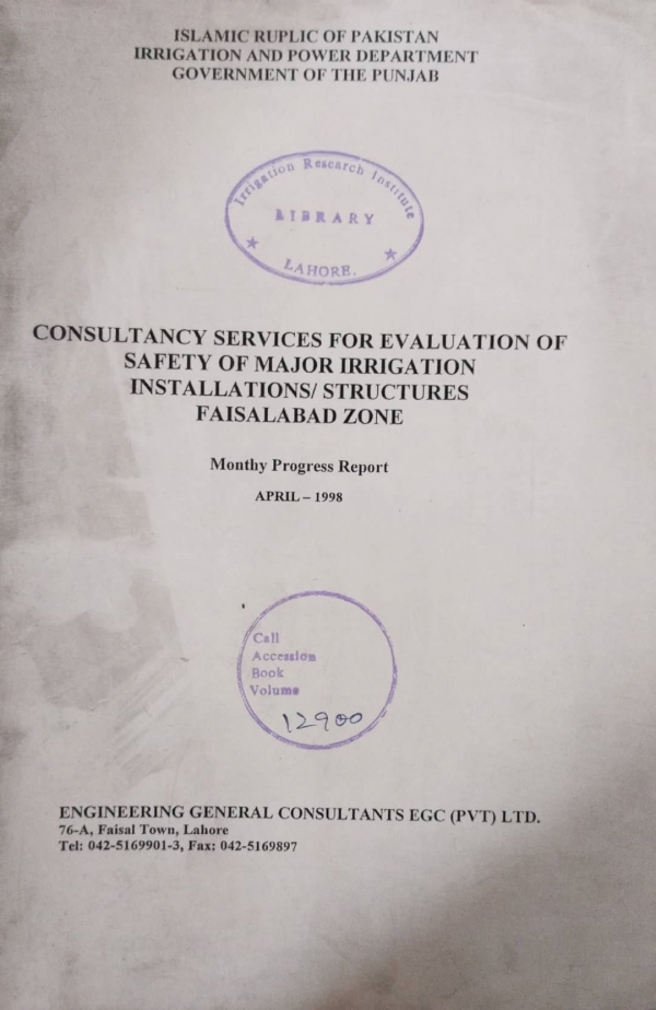Consultancy services for evaluation of safety of major irrigation installations structures faisalabad zone./ Irrigation and Power Department Government of the Punjab by
