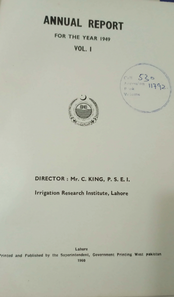 Annual report for the year 1949 vol.1 / Punjab irrigation research by