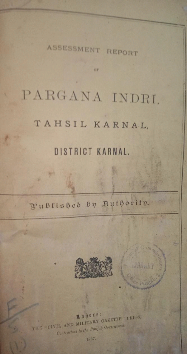 Assessment report of Pargana Indri, Tahsil Karnal District / by