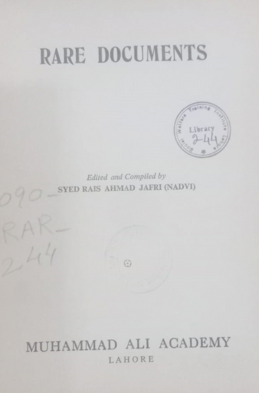 Rare Documents / Syed Rais Ahmad Jafri. by