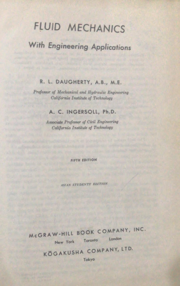 Fluid mechanics with engineering R.L. Daugherty and A.C. Ingersoll by