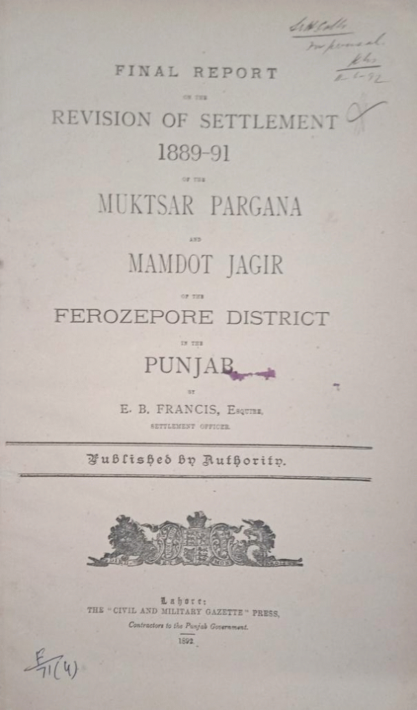 Publication details: Lahore: Pakistan: Civil & Military Gazette press, 1890