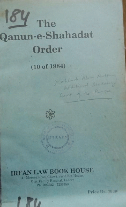 The Qanun-E-Shahadat Order1984 / Irfan law book house by