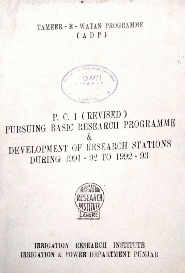 Pursuing basic research programme & development of research stations during 1991-92 to 1992-93/ Irrigation Research Institute Irrigation & Power Department Punjab by Series: P.C.I (Revised)
