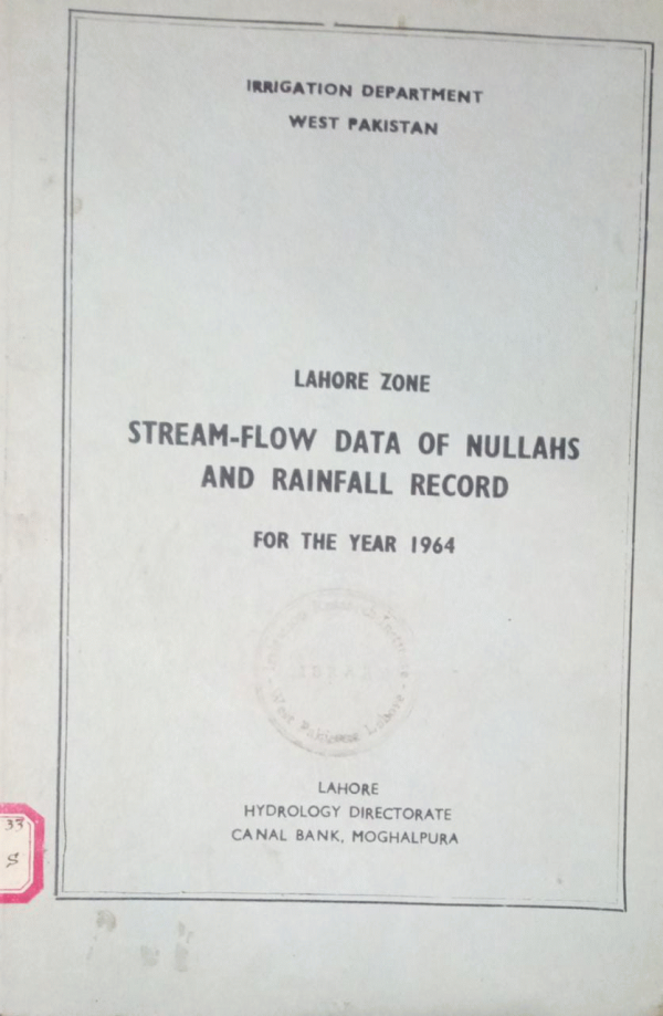 Publication details: Lahore : Hydrology Directorate, Irrigation Department, 1965