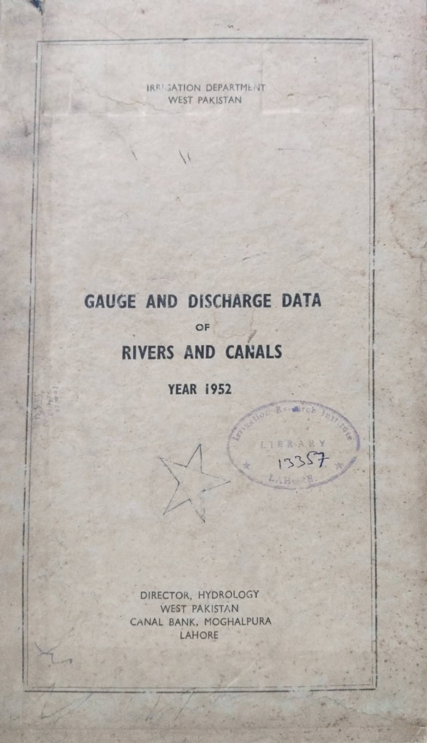Publication details: Lahore : Hydrology Directorate, Irrigation Department, 1962