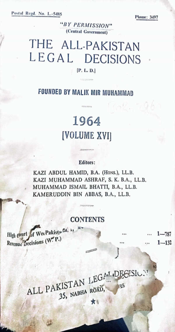 The all Pakistan legal decisions (PLD) : 1964 / Malik Meer Muhammad and edited by Malik Muhammad Saeed & Muhammad Ismail Bhatti by Series: ; vol.xvi
