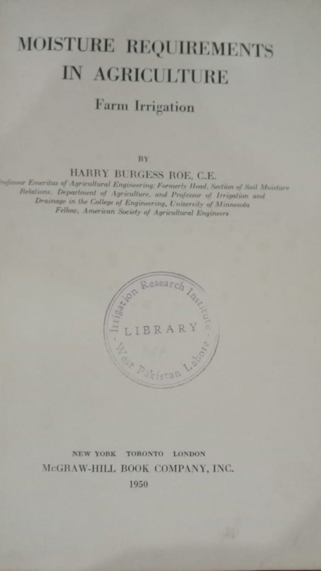 Moisture requirements in agriculture : farm irrigation / Harry Burgess Roe. by