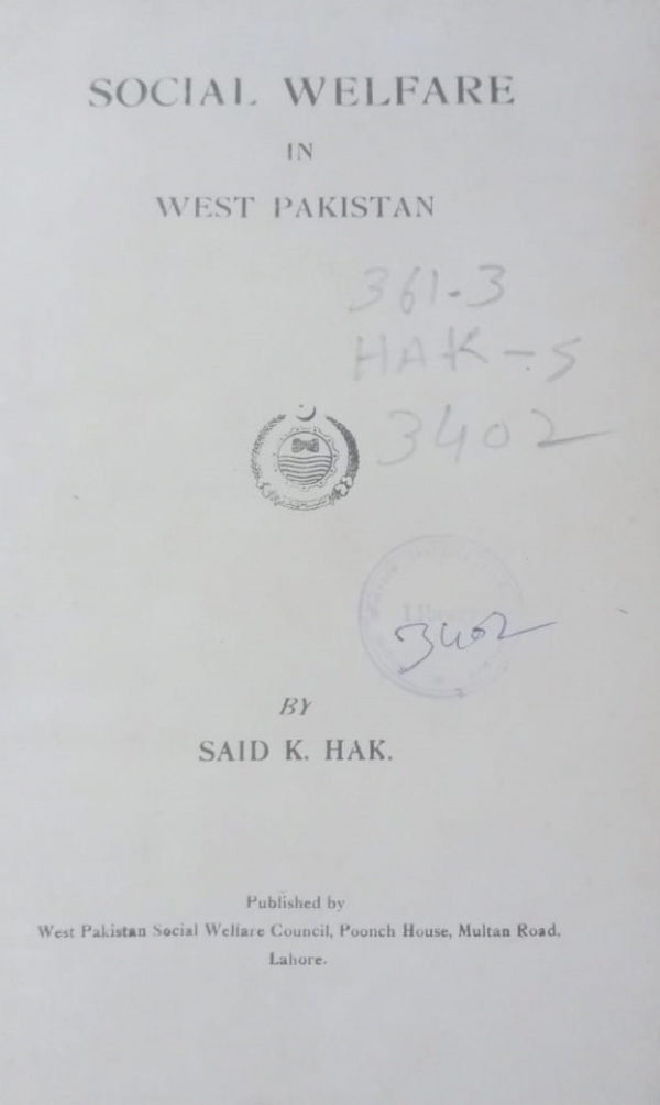 Publication details: Lahore: West Pakistan Social Welfare Council.
