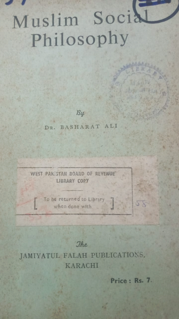 Muslim social philosophy / Basharat Ali. by