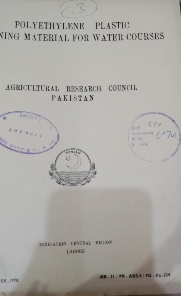 Polythene plastic a Lining material for water courses / Agriculture research council Pakistan