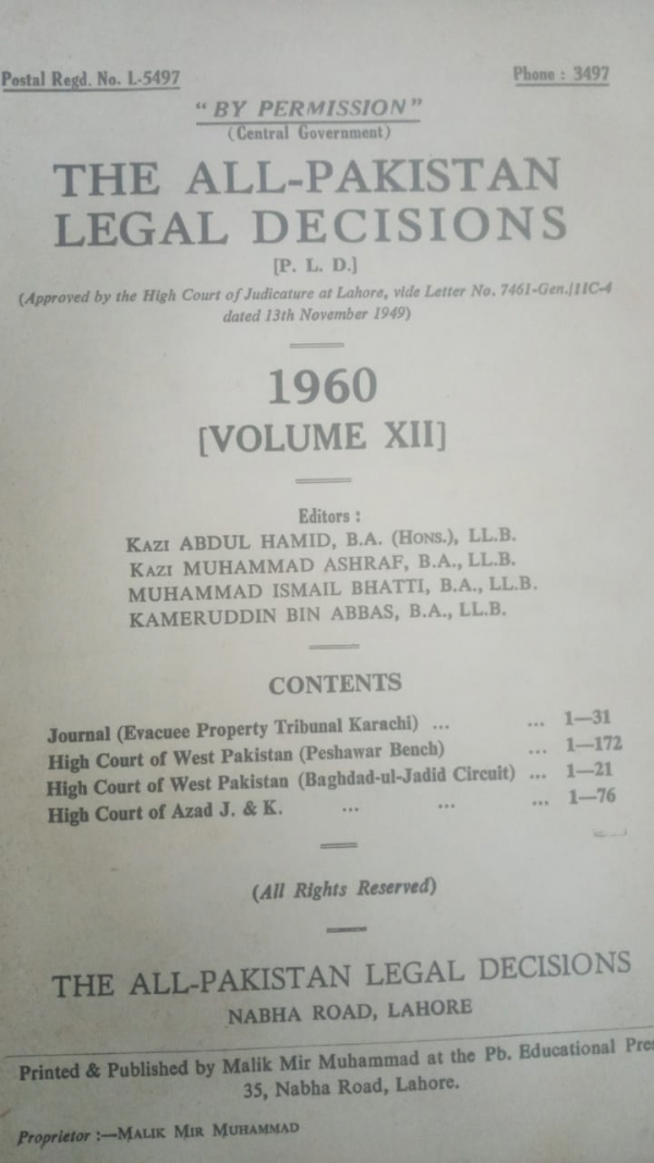 The all Pakistan legal decisions (PLD) : 1960 / Edited by Kazi Abdul Hamid, Kazi Muhammad Ashraf & Muhammad Ismail Bhatti. by Series: Vol- III