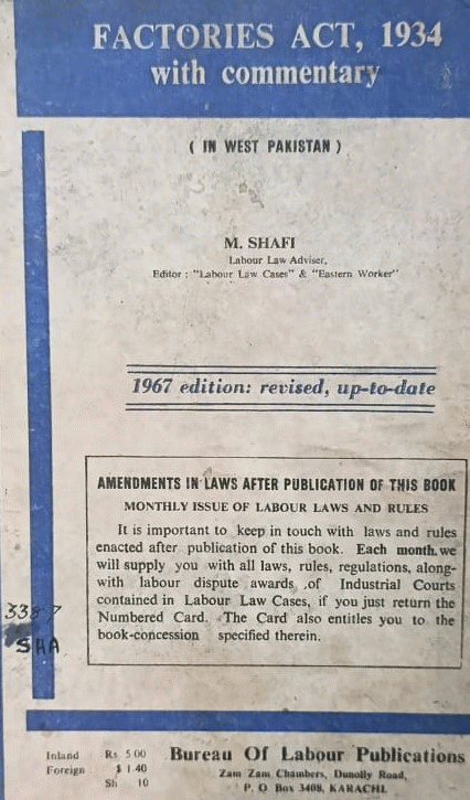 The Factories act,1934 : As amended by the labour laws ordinance1972 /