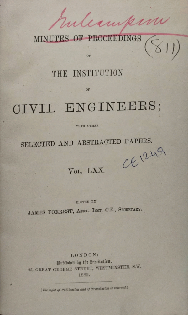 Minutes of the proceedings | Minutes of proceedings | Minutes of proceedings of the Institution of Civil Engineers constraining abstracts of the papers and of the conversations for the session