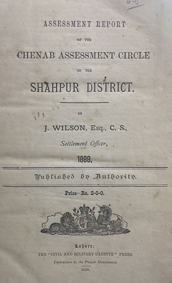 - Assessment report of the Chenab assessment circle in the Shahpur district